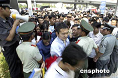 6月12日,2004年北京國際汽車展迎來周末參觀高峰,大批警察、武警、保安在現(xiàn)場維持秩序,確保展會安全、有序進(jìn)行。中新社記者:盛佳鵬