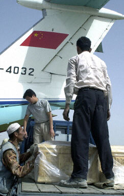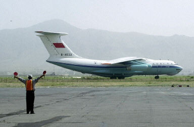 中國人民解放軍空軍運送中國11名遇害工人遺體的軍用專機6月14日抵達阿富汗首都的喀布爾國際機場。