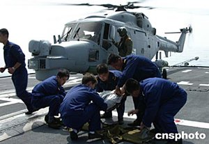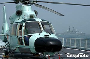 北海艦隊“哈爾濱”號導彈驅逐艦、“洪澤湖”號綜合補給艦、“海豚”艦載直升機和英國皇家海軍“埃克塞特”號導彈驅逐艦、“山貓”艦載直升機參加此次非傳統安全領域的聯合演習。