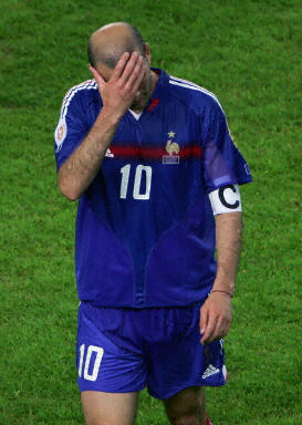 在對方的兇狠貼身逼搶下,法國隊頭號球星齊達內顯得十分焦躁,組織不起有效的中路進攻,防守上也顯得有些忙亂,為此還吃到黃牌。法國隊右路的進攻凌亂,左路依靠利扎拉祖的突破創造了一定的機會,不過在希臘隊密不透風的防守下,也只能無功而返。