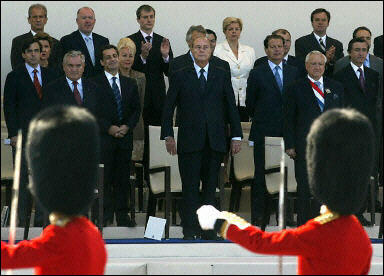 在主席臺上就座的,除了法國總統(tǒng)希拉克和法國政府要員外,還有特邀嘉賓英國國防部長胡恩及英軍參謀部各高官。
