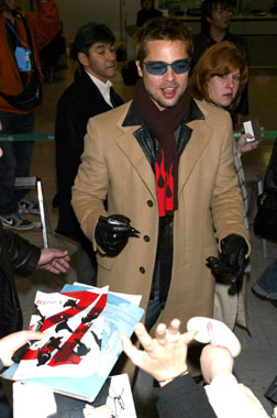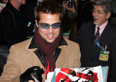 當身穿駝色大衣,佩戴黑色圍巾和墨鏡的皮特出現在機場大廳時,持攝像手機等候以久的影迷們頓時尖叫起來,而皮特也非常友好地和他們揮手致意,并且為部分影迷簽名留念。他在《十二羅漢》中的合作伙伴馬特戴蒙也將出席他們在日本的宣傳活動。