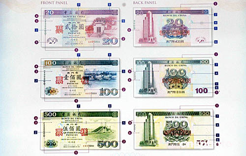 據悉,新版澳門幣與舊版紙幣相比,在保留了原來八項主要防偽特征的基礎上,增加了磁性微文字安全線、全息開窗安全線、白水印、凹印手感線、鈔票編號及熒光等。