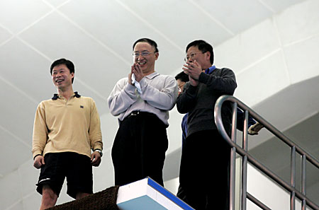 “跳水項(xiàng)目作為我們的傳統(tǒng)優(yōu)勢(shì)項(xiàng)目,經(jīng)多年而不衰,這與你們多年以來(lái)作風(fēng)紀(jì)律抓得好是分不開的,”劉鵬局長(zhǎng)在對(duì)全體隊(duì)員和教練員、工作人員的講話中說(shuō):“面向2008年,希望你們到時(shí)候能夠獲得運(yùn)動(dòng)成績(jī)和精神面貌的雙豐收!”