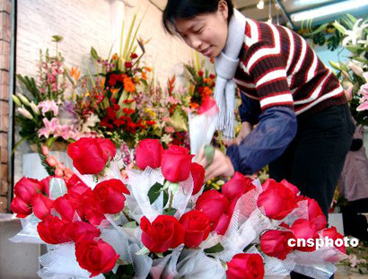 圖:泉州情人節玫瑰熱銷
