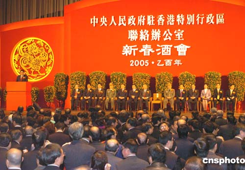 中央人民政府駐香港特別行政區聯絡辦公室22日晚在香港會展中心舉行2005(乙酉年)新春酒會﹐特首董建華與眾多嘉賓出席。作者:趙振清