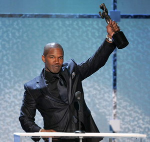 今年無(wú)疑是屬于杰米福克斯的一年,除了以《雷》片入圍奧斯卡影帝外,他還以《借刀殺人》提名奧斯卡最佳男配角獎(jiǎng),表現(xiàn)極為耀眼。而靈歌王雷-查爾斯生前最后的專輯在本月舉行的格萊美頒獎(jiǎng)禮上獲得八項(xiàng)大獎(jiǎng),也為杰米福克斯問(wèn)鼎奧斯卡小金人增添了砝碼。