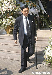 喪禮今早八時開始,以佛教儀式進行。靈堂內外放滿各界祭送的花圈。
