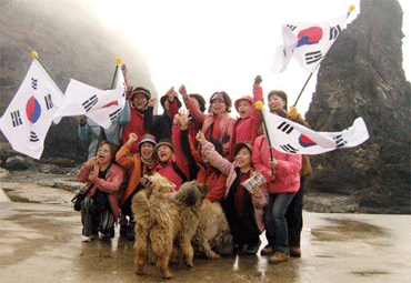 此前,他們在航行兩小時左右后看見“獨島”都走出艙外,手里揮動著太極旗,或以“獨島”為背景照像或高唱歌曲《獨島是我們的領土》。