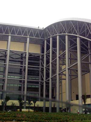 現(xiàn)場為路氹新填海區(qū)“澳門蛋”體育館建筑工地,樓高約六十米,天頂距地面有十八層樓高,因工程需要,體育館基本全由巨型鐵通組成,三名內(nèi)地勞工攀上天頂平臺外“要跳”,不時在天頂上走來走去,或坐在欄河旁邊,險象環(huán)生。消防員在地面開動多個巨型氣墊戒備。而在天頂上,救護人員及談判專家亦需配用安全帶做足安全措施方可進行勸吁及救援準(zhǔn)備工作。