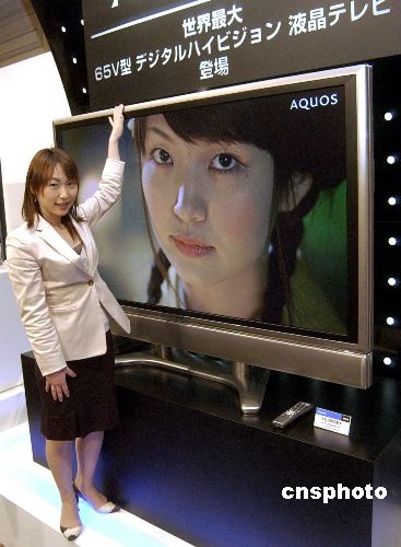 6月3日,夏普公司在日本大阪展示了夏普研發(fā)的65英寸液晶電視,該產品是目前世界上最大的液晶電視,將于8月1日在日本正式上市,售價約為一百六十八萬日元。作者:Ic/cnsphoto