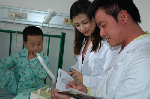 中新網(wǎng)6月8日電 6月7日,香港著名導(dǎo)演唐季禮與2004屆鳳凰衛(wèi)視“中華小姐環(huán)球大賽”冠軍李詩(shī)琪一天內(nèi)奔走于津、京兩地的中國(guó)醫(yī)學(xué)科學(xué)院血液病醫(yī)院和北京澳美聽(tīng)力語(yǔ)言研究中心之間,探訪那里的白血病患兒和耳聾的小朋友,呼吁整個(gè)社會(huì)對(duì)這些需要幫助的孩子的關(guān)愛(ài)。