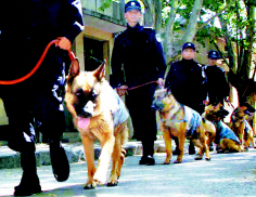 在現場會上,朝陽巡警一共攜來了數十條警犬。小廣場上一片狗吠聲。民警說,正是靠了這些警犬的幫助,在他們巡邏的城鄉結合部如十八里店、高碑店、來廣營、孫河等地,刑事類警情下降了1/4左右,四人以上團伙搶劫案件也有明顯減少,治安效果十分顯著。經過訓練之后,警犬對手持刀具、棍棒的人十分敏感,如果聽到槍聲更會不約而同迎著槍響猛撲過去。