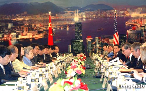中國國務院副總理吳儀與美國商務部長古鐵雷斯進行會談。作者:廖文靜