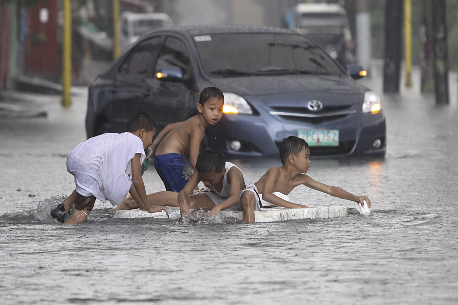 7月16日,一場熱帶風暴當天襲擊了菲律賓首都馬尼拉。這場風暴不但帶來大量降水,也使城市大量積水,出行困難。