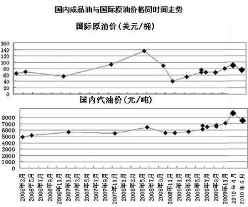 廣東油氣商會油品部部長姚達明在接受記者采訪時表示,不能簡單類比國際和國內油價的漲跌,得出國際油價跌這么多,而國內油價不降反升的結論。“因為2008年年底至今,中國成品油定價機制有一個根本性的改變。