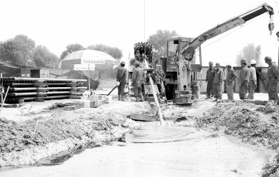 塔輪天然氣管道復線成功穿越中國最長內陸河。施工人員正在現場作業(8月8日攝)。