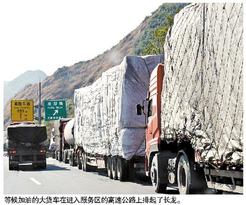 記者昨日從韶關交警京珠北大隊獲悉,受近期柴油供應緊張影響,京港澳高速公路粵境北段各服務區連日來不約而同地出現了大貨車排長龍進服務區加油的現象,令許多車輛無法進服務區休息補給。