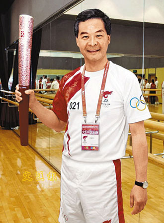 但“我跑完后,那把火炬還未曾返過我寫字樓”,原來梁振英借出奧運火炬及火炬手制服,給一所學校拍照留念并捐款賑災后,家長教師會見狀亦趕忙向他商轉借展覽,故火炬兜兜轉轉,直到9日才送回他的辦公室。