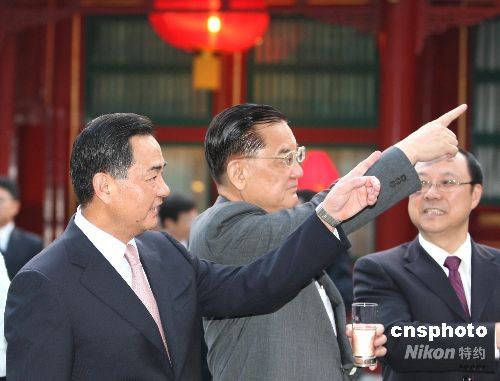 8月5日,中共中央臺灣工作辦公室、國務院臺灣事務辦公室主任王毅在北京釣魚臺賓館會見并宴請出席北京奧運會開幕式的中國國民黨榮譽主席連戰一行。中新社發 廖文靜 攝