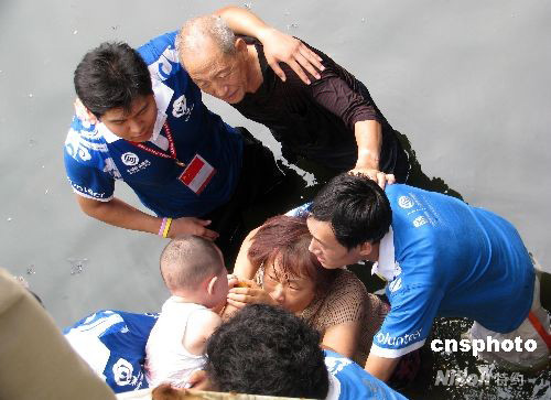 圖:汽車落水 北京奧運志愿者奮勇相救(2)