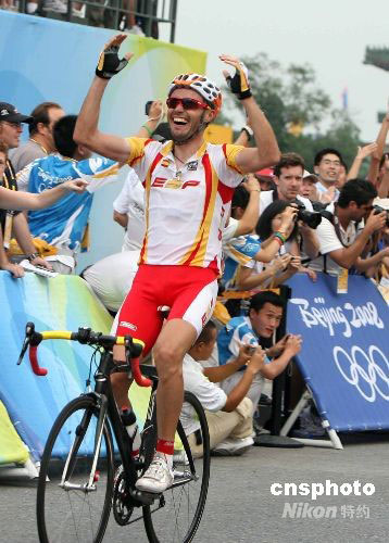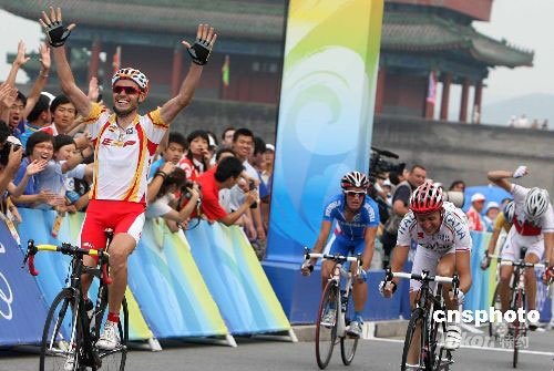 8月9日,2008北京奧運會自行車男子公路賽落幕,西班牙選手薩·桑切斯以6小時23分49秒奪得冠軍。中新社發(fā) 武仲林 攝