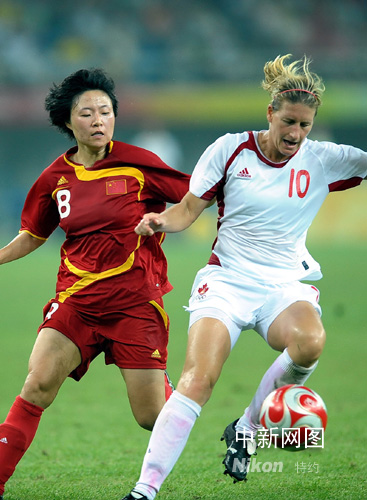 8月9日晚,奧運女足中國隊在天津一比一戰平加拿大隊。中新社記者 陳文 攝