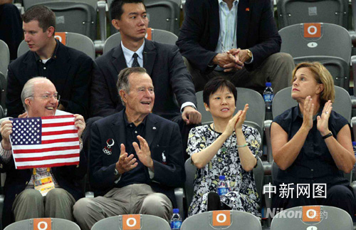 圖:老布什北京觀看男子體操團體決賽