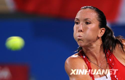 8月13日,塞爾維亞網(wǎng)球選手揚科維奇在比賽中回球,像是在用嘴將球吹走。新華社記者鄒崢攝