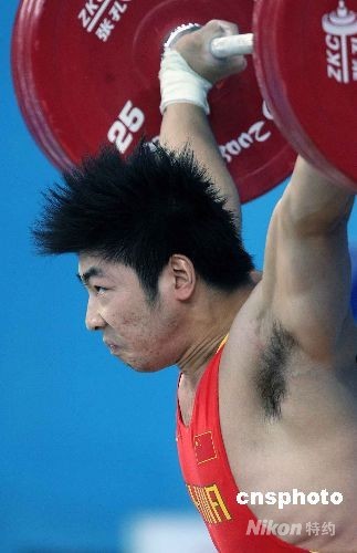 8月15日,北京奧運舉重男子85公斤級決賽中,中國選手陸永奪得冠軍。這是中國代表團在本屆奧運會上的第25枚奧運金牌,同時也是中國舉重隊在本屆奧運會上奪得的第8枚金牌,他成為首位舉重大級別上奪金的中國選手。中新社發 任晨鳴 攝