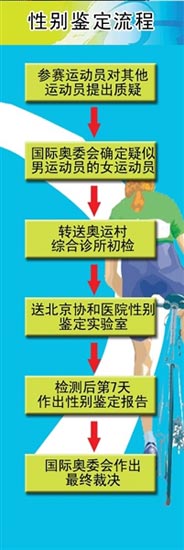 在北京協和醫院老樓地下一層,“第29屆奧林匹克運動會指定性別鑒定實驗室”的牌子異常醒目。該實驗室主任、北京奧運會性別鑒定官何方方教授說,為了能夠準確甄別運動員的性別,北京奧運會特別設立了性別鑒定實驗室,從臨床、性激素、染色體和基因檢測這四個方面,科學、全面地為運動員做性別鑒定。