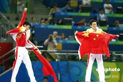 8月19日,中國選手陸春龍奪得北京奧運會男子蹦床金牌。中新社發(fā) 盛佳鵬 攝