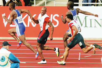 事件回放:美國(guó)隊(duì)憋足勁要在4×100米項(xiàng)目上好好作為。21日晚進(jìn)行的預(yù)賽中,美國(guó)隊(duì)分在A組,四棒選手分別是羅德尼馬丁、帕德格特、帕頓和蓋伊。美國(guó)隊(duì)頭三棒發(fā)揮正常,但在帕頓準(zhǔn)備交棒給第四棒蓋伊?xí)r意外失手,棒子很不客氣地掉在了地上。繼百米預(yù)賽意外“出局”之后,蓋伊又犯了一次“低級(jí)錯(cuò)誤”,也使得美國(guó)隊(duì)決賽欲與牙買加隊(duì)一爭(zhēng)高低的希望就此泡湯。更令美國(guó)人郁悶的是,一小時(shí)之后,美國(guó)女隊(duì)“復(fù)制”了男隊(duì)的錯(cuò)誤,同樣因交接棒失誤與決賽無緣。