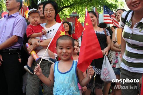 美國東部時間8月24日,紐約華人華僑舉行盛大集會,共同慶祝北京奧運會圓滿成功。許多年紀尚幼的孩子,也手舞國旗走上街頭,歡慶的人流令紐約華埠如節日般熱鬧。