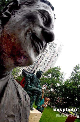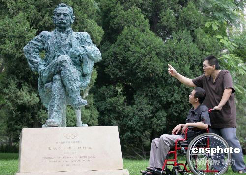 8月29日,顧拜旦、薩馬蘭奇、羅格雕像亮相東城區(qū)東四奧林匹克社區(qū)公園。顧拜旦雕像為坐像,高195厘米,花崗巖基座高70厘米,薩馬蘭奇和羅格雕像為半身胸像,像高分別為68厘米和65厘米,花崗巖基座高為120厘米。雕像全部由北京金臺藝術(shù)館館長袁熙坤親手制作,在殘奧會開幕前安放在東四奧林匹克社區(qū)公園,供各國殘奧會運動員和社區(qū)居民免費參觀。中新社發(fā) 杜洋 攝