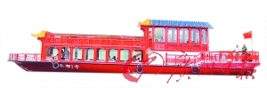 該畫舫船外形美觀,格調典雅,操縱靈活,是一款具有典型客家風情的船型,主要用于接待、觀光和游覽。(陳治家 吳立平)