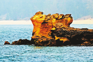 “一半是火焰,一半是海水”。位于儋州峨蔓港的“龍門激浪”,是100萬年前火山噴發后在海岸線形成的火山巖奇觀。北風掀浪,撞于石門,鳴聲如鼓,回響不絕。雖然經過100萬多年海水的沖刷,但從火山石千奇百怪的形態和大面積的擴散、分布中,還是能明顯感覺到火山爆發時,巖漿迸裂和大規模流動的痕跡,令人感嘆地質運動中大自然的神工和壯觀。