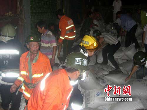 8月24日晚,救援人員在進行緊張救援。黃磷寧 攝