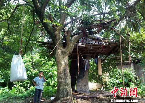 2003年時,吳萬杰家在玉州區城西街道的泥土房被大雨沖垮。房子倒塌后,吳萬杰一家便寄宿在已經過世的外婆家僅剩的幾間泥磚房里。今年6月,連夜大雨帶來的洪水再次沖走了他們賴以生存的房子。眼看著洪水漲到家里窗戶以上,留守家中的弟弟吳萬威急中生智抽出家里的床板,在屋子旁的龍眼樹上搭建了個臨時的小棚。吳萬杰的父母和弟弟就是躲在樹上這個小棚才得以堅持到消防員前來救援的。洪水快要消退時,除了廚房,其余的房間已經全部倒塌。