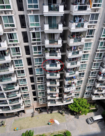 住在小區2號樓的老王目擊了整個過程。“他當時半蹲著,雙手緊抓著陽臺護欄,雙腳踩在陽臺外側的邊沿上。”老王一邊模仿男子當時的姿勢,一邊說,“他嘴里一直在喊救命,小區門口的保安聽到后趕緊往那邊跑,我也趕過去想幫助救人。保安剛到樓下,那小伙子的左腳突然滑下來,他往上蹬了幾下,沒蹬上去,右腳也跟著滑了下來,僅靠雙手抓住護欄。沒幾秒鐘,人就摔了下來。”