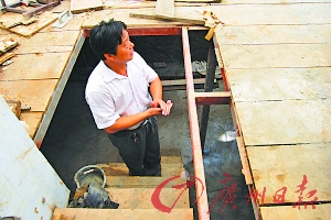 這個“地宮”位于南京市五塘廣場附近的白云新寓小區內,業主許先生,今年40多歲,安徽人。2009年,他在該小區買了一套面積為42平方米的房子,這套住宅南面與房屋相連有個院子,差不多有30平方米大。從圖片可以看到,院子被一層齊地的木板隔成地上和地下兩層,由樓梯相互連接。