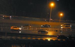 昨晚九點多,四惠橋,交通擁堵有所緩解。本報記者 薛珺 攝