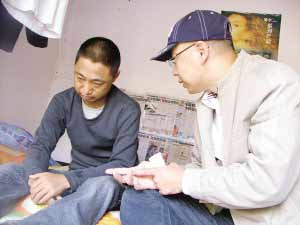 昨天,記者見到了“青島遼寧老鄉(xiāng)互助會”的兩名負(fù)責(zé)人,莊紹武和胡越,他們正準(zhǔn)備把剛籌集到的2000元錢送到八醫(yī),用做張志國做透析的費用。“我們幫助張志國是個很偶然的機(jī)會!鼻f紹武告訴記者,今年4月份,一幫在青島工作多年的遼寧老鄉(xiāng)在QQ群(群號:23490201)上注冊了一個“青島遼寧老鄉(xiāng)互助會”的組織,很快就發(fā)展到了130多人,老鄉(xiāng)們還聚會了幾次,相約互相幫助。