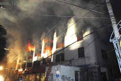 事件實錄:一場持續了兩個多小時的大火,燒掉了該廠三至五層的廠房。泉州市委常委、市公安局局長張東鳴趕到現場指揮,泉州市消防支隊出動21輛消防車滅火。所幸起火前10分鐘,100多名工人已經下班,唯一受困的員工,也踩著20米高的消防云梯成功逃生,大火沒有造成人員傷亡。