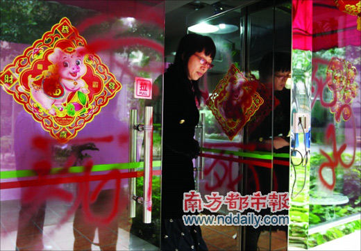 前日上午,深圳某電視頻道“Happy跟我走”節(jié)目制片人張某A發(fā)現(xiàn),該節(jié)目位于商報路景樺花園B棟的制作基地玻璃門上被噴涂了詛咒大字。昨日記者在現(xiàn)場看到,該處玻璃大門和外墻上分別被用紅色、黑色噴涂上了“死、去死吧”等字樣。張某A同時稱,此前,她曾接到幾十個威脅、恐嚇電話。她認(rèn)為上述事件同位于南山高新區(qū)的某公司有關(guān),起因是廣告合同糾紛。