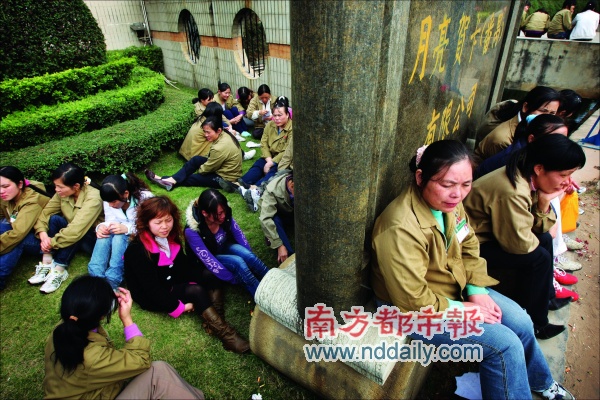 昨日,在月亮卡公司門前,200多名員工向廠方表示抗議,并要求見董事長兼總經(jīng)理區(qū)卓基。周圍有大批民警維持秩序。很多員工手中還拿著工牌,上面顯示了入廠的日期。1996年入廠的吳小瑛說,與廠里許多姐妹一樣,她已經(jīng)為公司工作十多年。“當(dāng)時(shí),我還只是一個(gè)小姑娘,在廠里工作,在廠里生活,工廠這個(gè)小圈子就好像我世界的全部,而現(xiàn)在,它要拋棄我。”吳小瑛說著,眼眶濕潤了。