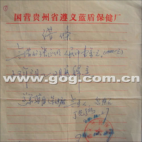 張某的父親告訴記者,兒子入獄兩個月后,想進(jìn)監(jiān)獄醫(yī)院,以學(xué)得一技之長。鑒此,他找到時任院長丁光弼要求關(guān)照,丁答應(yīng)讓兒子進(jìn)醫(yī)院,但同時向他提出了借款1萬元的要求,理由是:監(jiān)獄下屬“三產(chǎn)”企業(yè)遵義藍(lán)盾保健廠缺乏資金。張某父親說,為了兒子,他向銀行貸了1萬元,于1994年12月27日交給丁光弼后,丁和監(jiān)獄醫(yī)院財務(wù)人員忽桂紅共同在借條上簽了字,并蓋上了“遵義藍(lán)盾保健廠”公章。