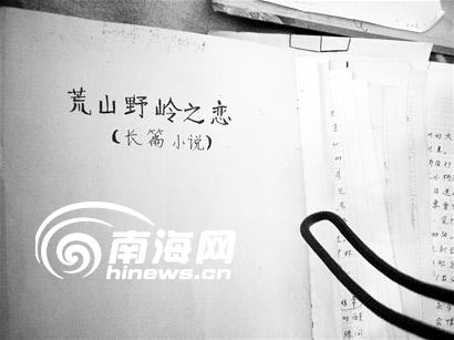 “我愿意是廢墟,在峻峭的山巖上,這靜默的毀滅并不使我懊喪……只要我的愛人是青青的常春藤,沿著我荒涼的額,親密地攀援上升。”1月5日上午,在海口瓊山三門坡鎮黃守培的家里,在《荒山野嶺之戀》小說手稿的第一頁,記者看到了這段深情告白。