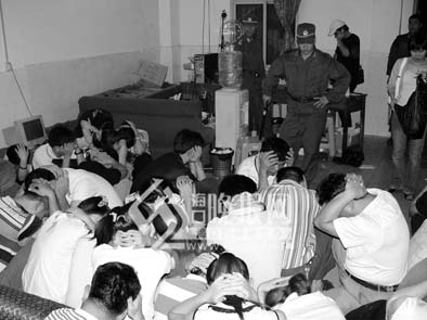 2007年7月24日零時許,當公安干警來到賭場樓下時,由于大門緊閉,東方市邊防支隊的10名身著便裝的民警想扮成賭徒混進賭場,但被戒備心強的看場子人員擋了出來。民警只好采取強攻的辦法。東方市邊防支隊指派兩名民警翻墻入院內打開大門,并率先沖向賭場的三樓,其余民警也緊隨其后沖進賭場。警方當場抓獲參賭人員和為賭場服務的人員共61人,其中有賭場老板林軍、“看場”人員鄭永武、李道武和湯榮福,賭場的服務人員20人,參賭人員37人,繳獲人民幣100374元等。