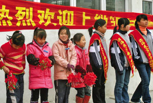 下午2時(shí)50分,捐贈(zèng)單位代表在學(xué)生“熱烈歡迎”聲中來到學(xué)校。幾位代表發(fā)言后,他們逐個(gè)班級向?qū)W生們贈(zèng)送書包、詞典、筆記本等文具。其中一名代表告訴記者:“本來說好2點(diǎn)鐘來的,后來開會(huì)耽誤了。”